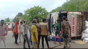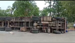 मुर्गा चारा से लदी ट्रक दुर्घटनाग्रस्त, बाल बाल बचा चालक!
