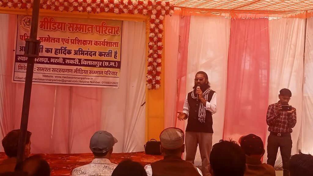 बिलासपुर। मीडिया सम्मान परिवार द्वारा प्रदेश स्तरीय परिचय, प्रशिक्षण एवं सम्मान समारोह का आयोजन आवास पारा परसदा भरनी सकरी बिलासपुर में किया गया। इस कार्यक्रम में छत्तीसगढ़ के विभिन्न जिलों से पत्रकार साथी शामिल हुए एक दूसरे से परिचित हुए और पत्रकारिता के विभिन्न पहलुओं पर चर्चा की।