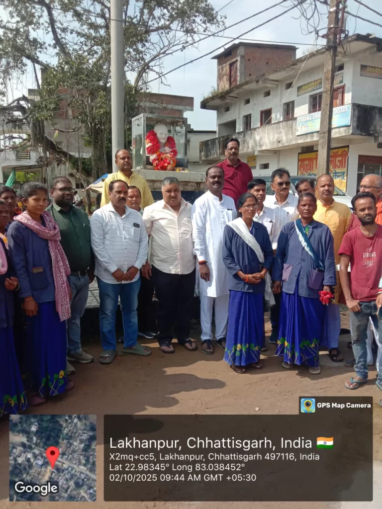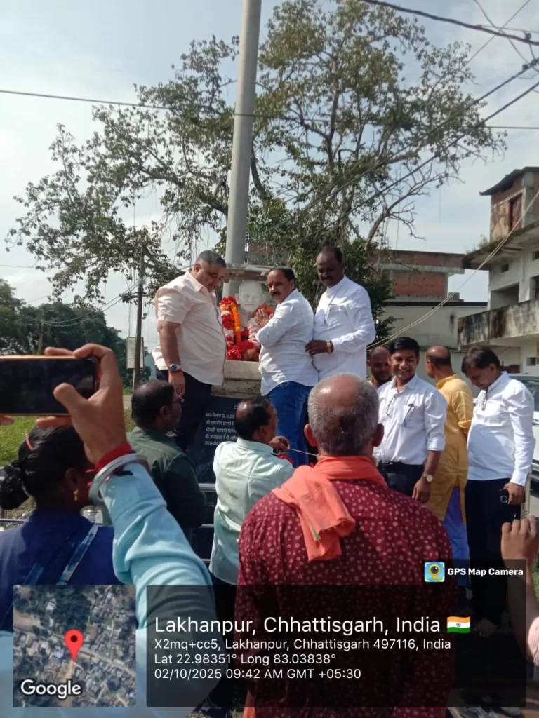 आज दिनांक 02 अक्टूबर 2025 दिन गुरुवार को महात्मा गांधी जयंती के उपलक्ष्य में नगर पंचायत लखनपुर के वार्ड क्रमांक 04 में स्थापित गांधी प्रतिमा में केबीनेट मंत्री श्री राजेश अग्रवाल जी एवं नगर पंचायत अध्यक्ष श्रीमती सावित्री दिनेश साहू जी के द्वारा फूल माला चढाकर श्रद्धा सुमन अर्पित किया गया। तथा केबिनेट मंत्री श्री राजेश अग्रवाल जी के द्वारा स्वच्छता दीदीयो को मिठाई खिलाकर सम्मानित किया गया।और उनके कार्यों की सराहना की। नगर पंचायत अध्यक्ष श्रीमती सावित्री दिनेश साहू ने कहा कि स्वच्छता दीदीयो के कारण ही प्रतिदिन पूरे नगर में प्रतिदिन डोर टू डोर कचडा कलेक्शन का कार्य प्रतिदिन होता है। तथा आम जनता स्वच्छता को लेकर जागरूक हैं।