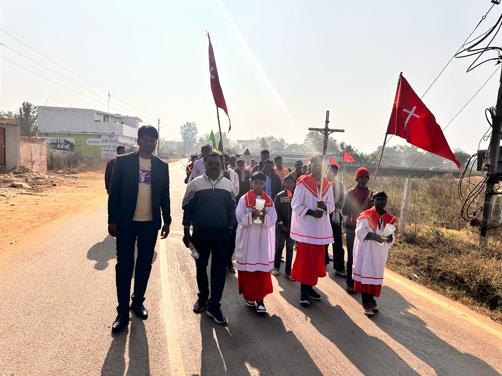 कुसमी। प्रतिवर्ष की भांति इस वर्ष भी बलरामपुर के कुसमी विकासखंड में ईसाई समुदाय द्वारा प्रभु यीशु के नाम पर समर्पित ख्रीस्त राजा पर्व बड़े ही शांति एवं सौहाद्र पूर्वक मनाया गया विश्वासियों के द्वारा संत अन्ना स्कूल से रैली निकालकर बालक येशु चर्च में प्रार्थना के तौर पर रैली को समाप्त करते हुए सभी समाज के लोगों को शांति ,दया ,प्रेम का संदेश दिया ,रैली में समाज के सभी वर्ग के बच्चे ,महिलाएं ,पुरुष सभी लोगों ने बढ़-चढ़कर हिस्सा लिया, इस वर्ष विधानसभा चुनाव तत्काल में ही समाप्त हुआ है जिस कारण आचार संहिता पूरे राज्य में अभी भी प्रभावशील है इसी को मध्य नजर रखते हुए समाज ने रैली का आकार छोटा रखकर अपनी सामाजिक रीति नीति को समुदाय ने बनाए रखा। जानकारी हेतु बता दें कि धार्मिक कैलेंडर के अनुसार साल के अंतिम यानी 34 वे रविवार को ख्रीस्त राजा पर्व मनाया जाता है इसके बाद नया कैलेंडर वर्ष शुरू होता है विश्व भर में इस पर्व को ईसाई समुदाय के द्वारा जोर-शोर से मनाया जाता है, समुदाय द्वारा यह संदेश दिया जाता है कि धर्म से भटके हुए लोगों में ईश्वर के प्रति श्रद्धा एवं विश्वास बढ़े इन विषयों को लेकर रोम में पोप पाईस एलेवन ने ख्रीस्त राजा पर्व की सर्वप्रथम शुरुआत की थी जो अनवरत चली आ रही है, कार्यक्रम में समाज के प्रमुख निर्मल खाखा, कमिला तिग्गा ,दीपक बड़ा, अजीत टोप्पो, प्रेमलाल, अश्विन खेस ,सहित समाज के अन्य लोगों ने बढ़ चढ़कर हिस्सा लिया।